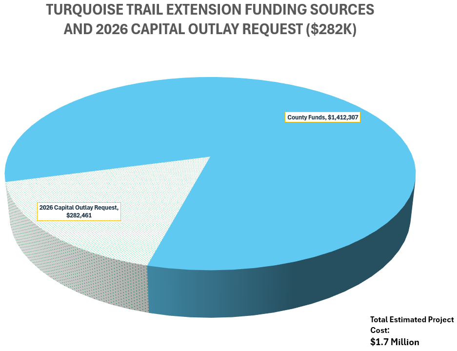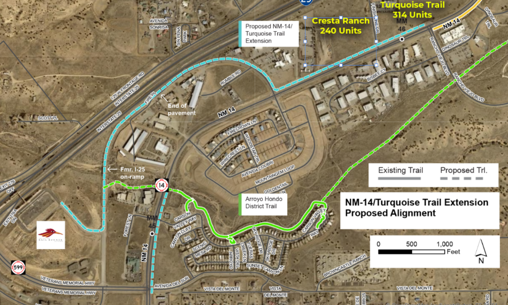 Phase I of the project is for the construction of the NM14 Turquoise Trail Multiuse Trail Extension from the intersection of NM14 and Rancho Viejo Blvd to the NMRX-NM599 Station along NMDOT NM14 and Fire Place Road right-of-way.