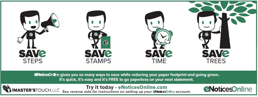 Note: You are registering for paperless statements when you register at eNoticesOnline.com. It will be your responsibility to keep your email address up to date or you will be automatically returned to paper. If you need further assistance, please go to help.enoticesonline.com