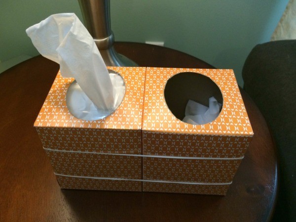Tissue boxes. These work great as a garbage receptacle on the bathroom counter. |