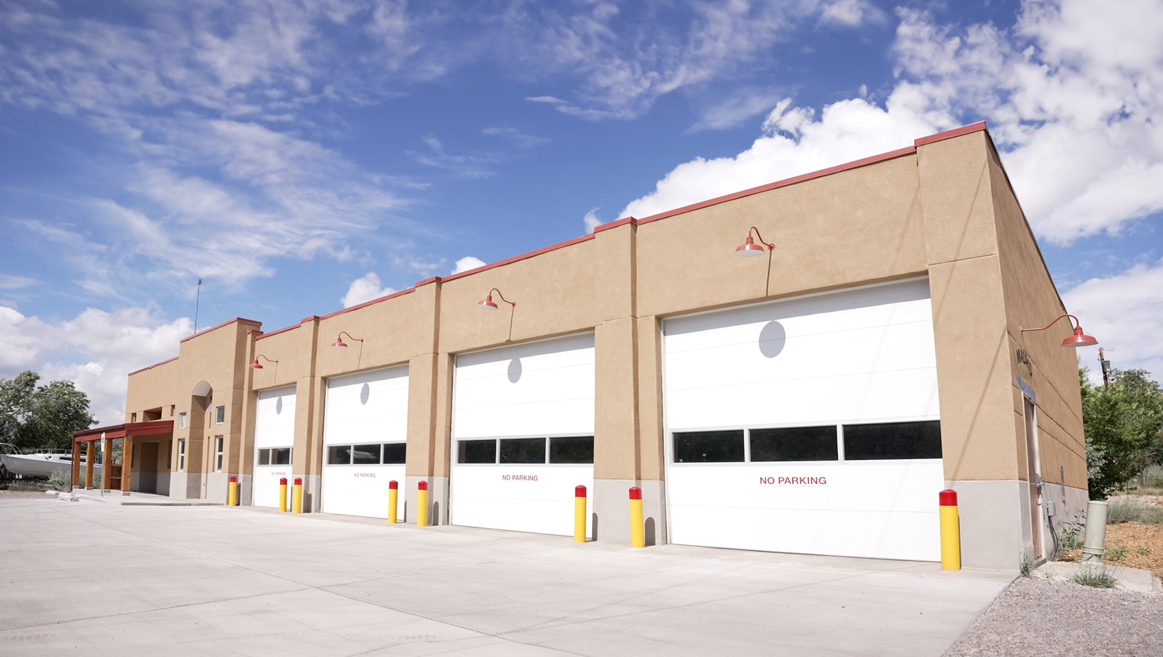 To support increased operational demands, the fire bay was expanded to accommodate additional equipment storage, a new concrete pad was installed, and a vehicle exhaust extraction system was added to enhance operational safety. Overall, the building’s exterior was newly stuccoed and a new liquid waste system was installed to meet environmental standards and accommodate increased facility use.