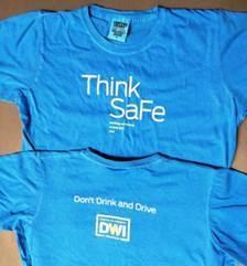 Santa Fe, NM - September 4, 2014 – Bartenders and wait staff in select Santa Fe bars and restaurants will be wearing the Santa Fe County DWI Program’s Think SaFe t-shirts and buttons while serving starting Friday September 5 through the end of the year. The “Think SaFe. Drinking and driving is never good. Ever.” message is printed on the front of the shirt and the DWI Program logo and “Don’t drink and drive” is displayed on the back of the bright blue t-shirts. “Think SaFe” is prominently displayed on the button along with the DWI logo and the message “Don’t Drink and Drive”.
