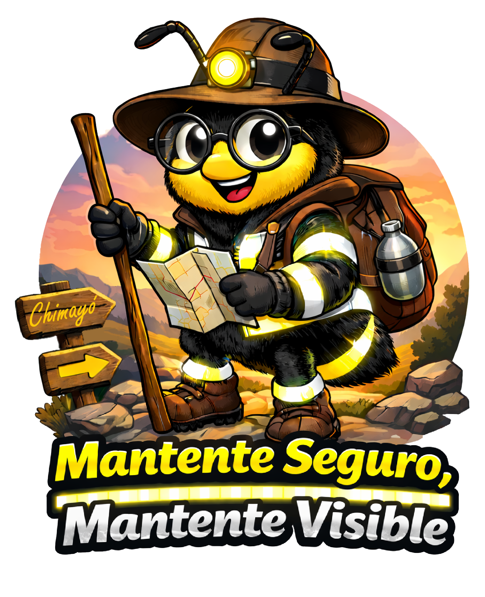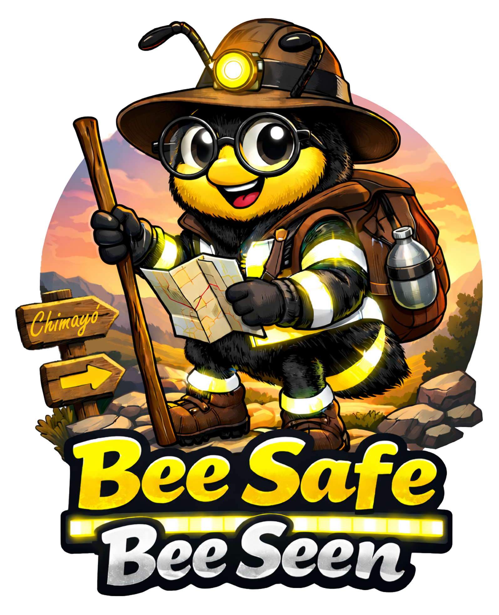 Street visibility is crucial for public safety, so Santa Fe County created a special Bee mascot for this year's event, with the slogan, “Bee Seen, Bee Safe,” and in Spanish, “Mantente Seguro, Mantente Visible.” The mascot models good safety practices by wearing reflective clothing, a hat, headlamp, and hiking boots, and carries a backpack with supplies, water, a map, and a walking stick.