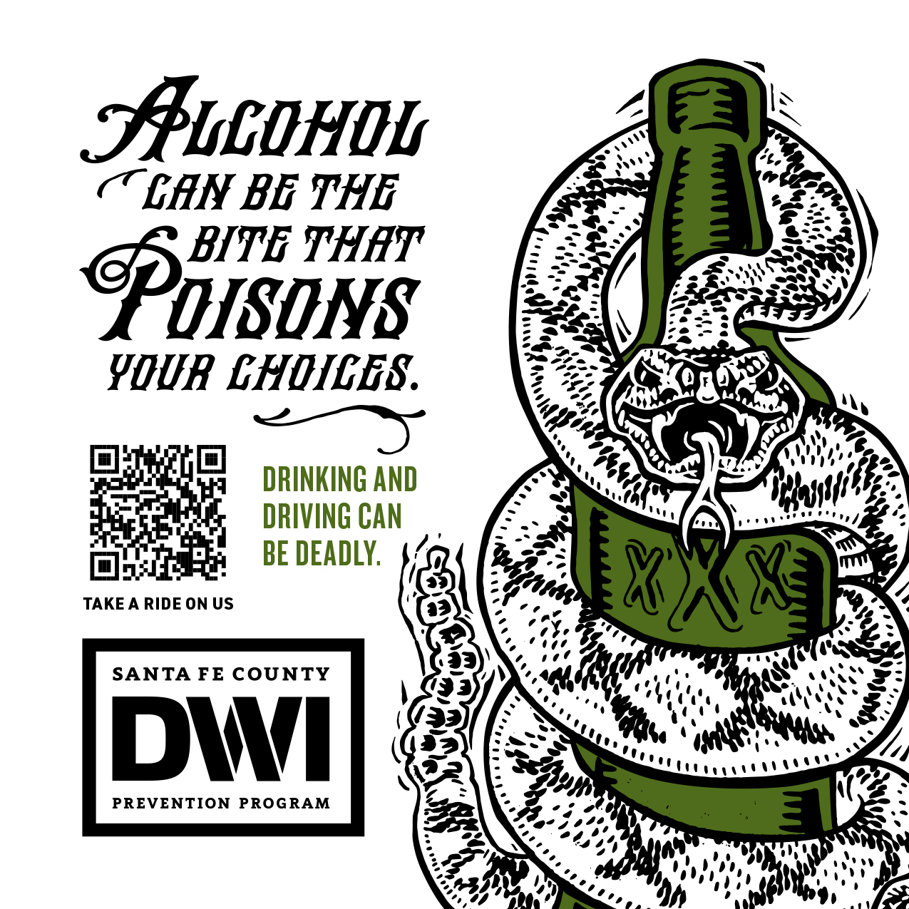 This seasonal public awareness initiative partners with local bars, restaurants, liquor stores, cannabis dispensaries, and coffee shops to spread a powerful message: "Alcohol Can Be the Bite That Poisons Your Choices." Designed by Firestik Studios, this year's campaign features a striking image of a rattlesnake wrapped around an alcohol bottle, symbolizing the danger and toxicity that drinking and driving can bring to people's lives.